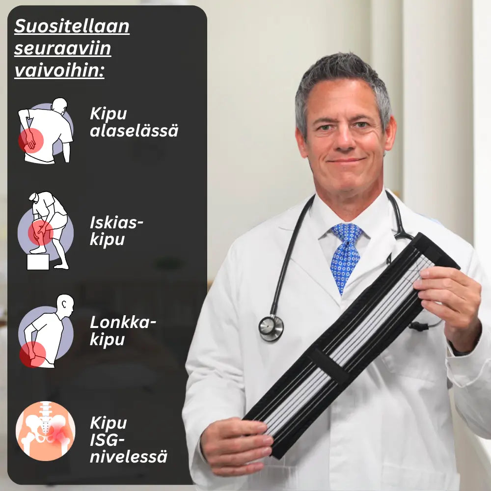 Auttaa pitämään hyvän ryhdin ja helpottaa painetta alaselässä